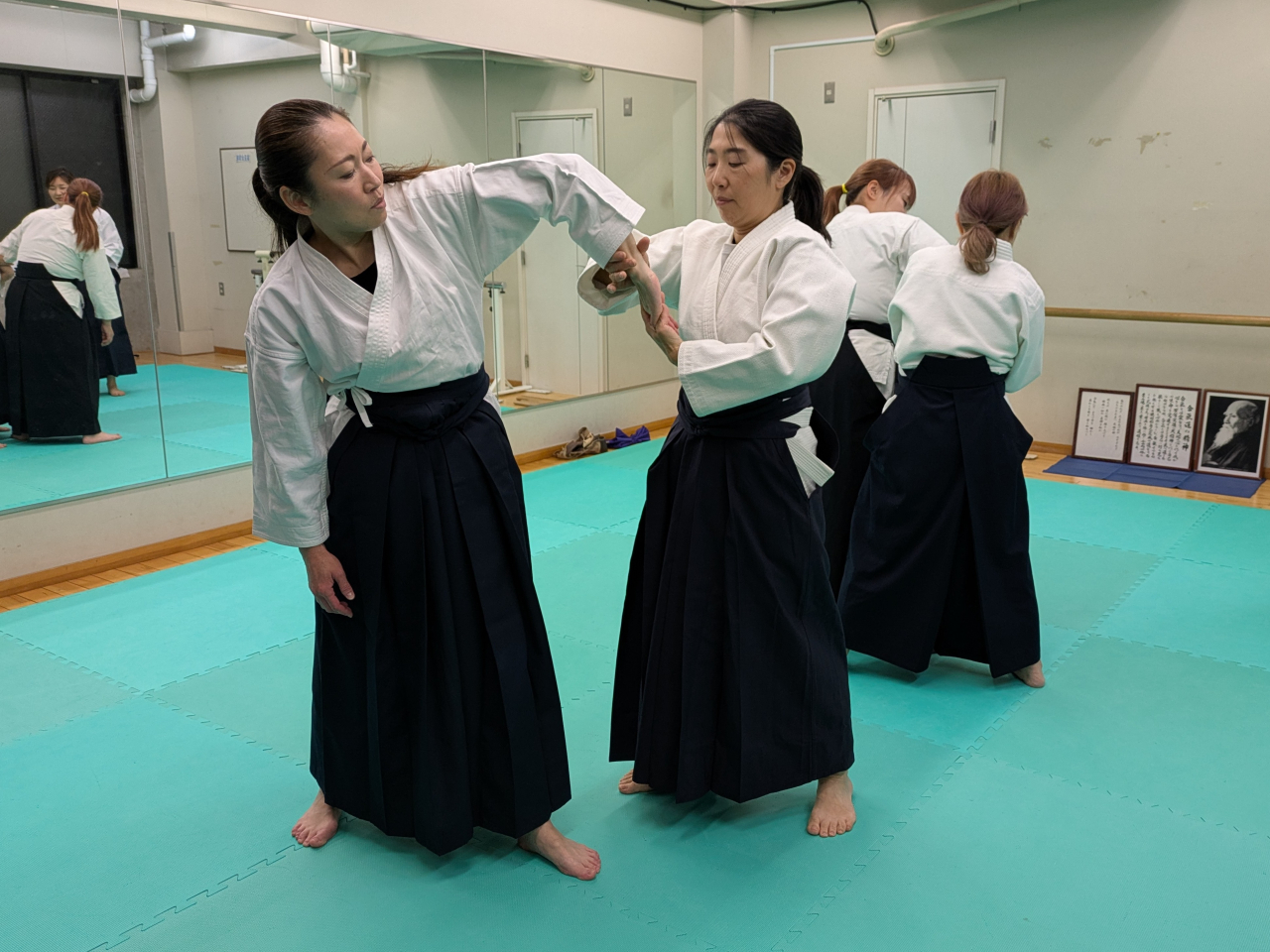 この日の技の稽古のメインは正面打ち三ヶ条裏でした。ここしばらく、正面打ち一ヶ条、二ヶ条、そして三ヶ条と基本技を集中的にしっかり稽古していますが、これは川崎髙津道場においてはかなり珍しいことです。たまたま、最近新しく入った方が多く、順番的にちょうど正面打ちシリーズが周ってきたところだったので、基本技を稽古するのによい機会だと思ったのです(川崎髙津道場の技の稽古はふつう数回ごとで「片手取りの技」→「正面打ちの技」→「両手取りの技」→「突きの技」→...といったまとまりで行っています)。