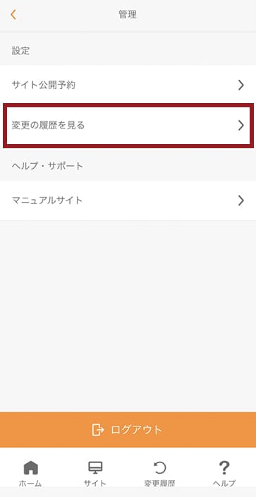 管理画面の[設定] → [変更の履歴を見る]を選択します。