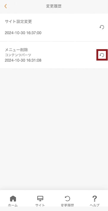 変更を取り消したい場合は、取り消したい操作の右にある[変更を戻す]ボタンをタップします。