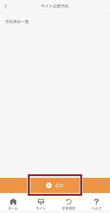 サイト公開予約画面が表示されますので、下部の[追加]ボタンをタップします。