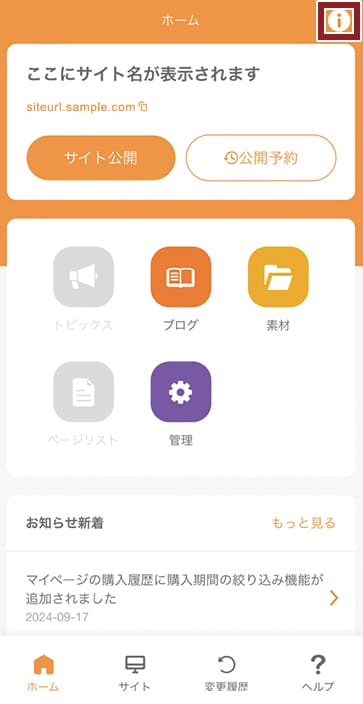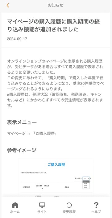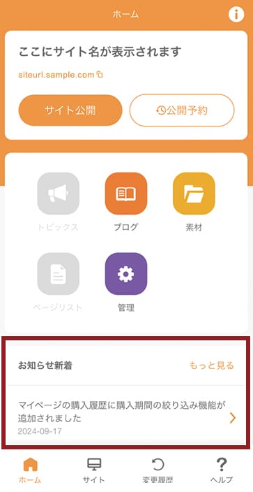 新しい機能やアップデート情報などの「お知らせ」を確認することができます。