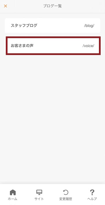 サイト内にブログコンテンツが複数ある場合は、ブログ一覧画面が表示されますので、確認したいブログをタップします。 ※ブログコンテンツが一つしかない場合は、この一覧は表示されません。