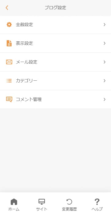 ブログ設定画面のメニューを選択して、各設定を変更します。詳しくは下記の各設定の詳細を参照してください。