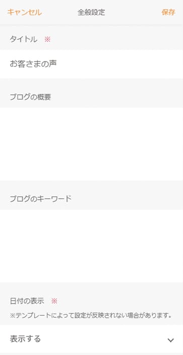 画面右上の「保存」をタップし、メッセージを確認して[保存]をタップします。保存後はブログ設定画面が表示されます。