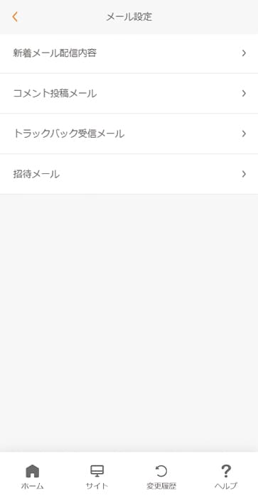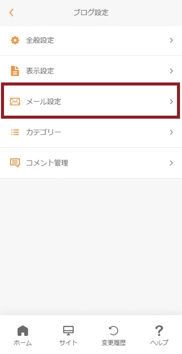 ブログ設定画面を表示し、[メール設定]をタップします。