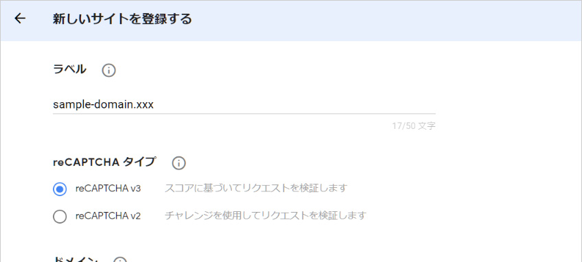 Google reCAPTCHAの登録Google reCAPTCHAの登録