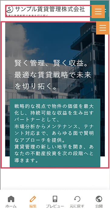 「編集サイト」は、スマホアプリにログインしている状態で編集しているサイトのプレビューや編集を行うことができます。