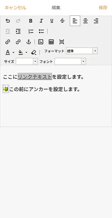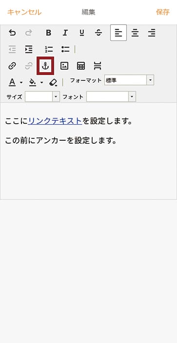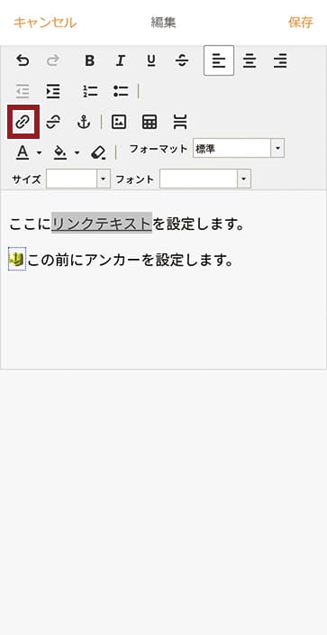 ツールバーの[アンカー挿入/編集]ボタンをタップします。