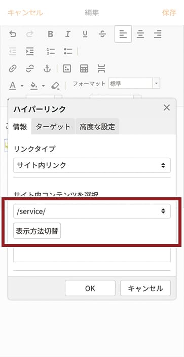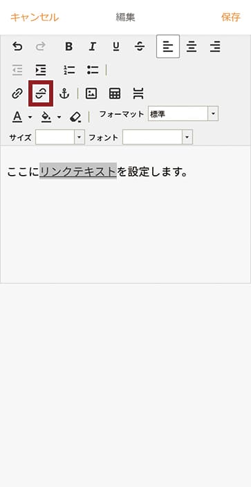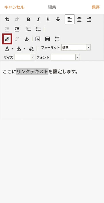 ツールバーの[リンク挿入/編集]ボタンをタップします。