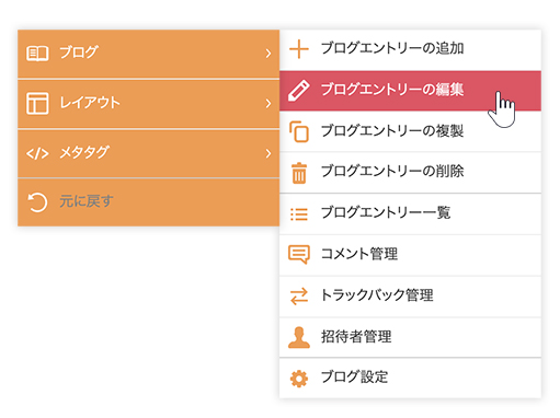 • エントリーを編集する場合は[ブログエントリーの編集]