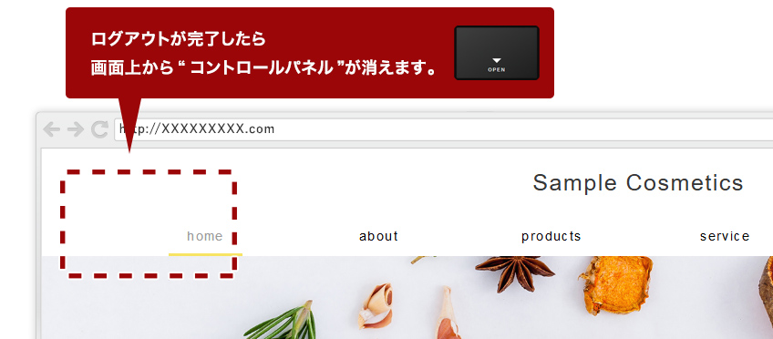 ホームページの編集が終わったらログアウトで編集サイトを終了します。