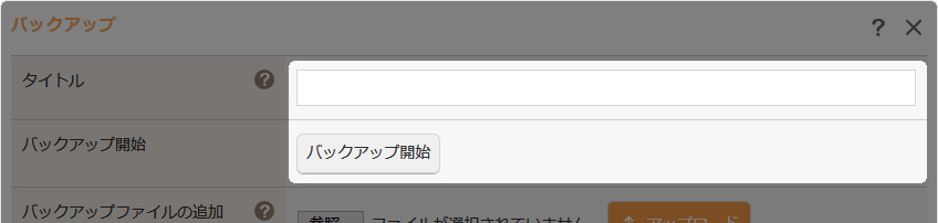 | タイトル | バックアップ一覧に表示されるバックアップのタイトルを入力します。 |