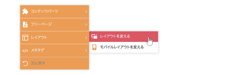 - 「デフォルトレイアウト」を変更すると「デフォルトレイアウト」が設定されている全てのページのレイアウトが一括で変更されますのでご注意ください。