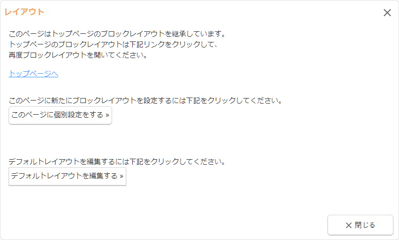「このページはトップページのブロックレイアウトを継承しています。」のメッセージ表示