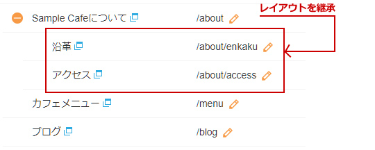 レイアウトは上の階層ページのレイアウトを継承します。