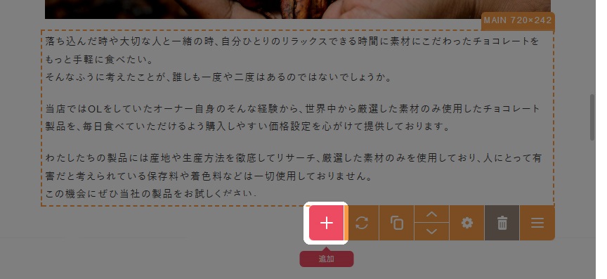 画像を使用したコンテンツパーツの一覧から使用したいパーツをクリックすると、選択したコンテンツパーツが配置されます。