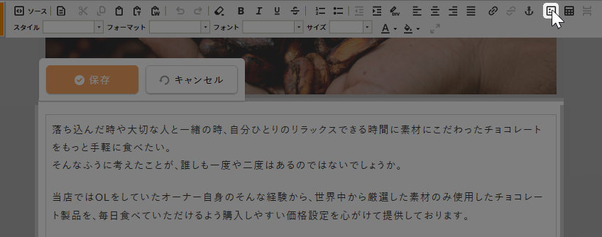 画像を挿入したい位置にカーソルを置き、ツールバーの[画像の挿入/編集]ボタンをクリックします。
