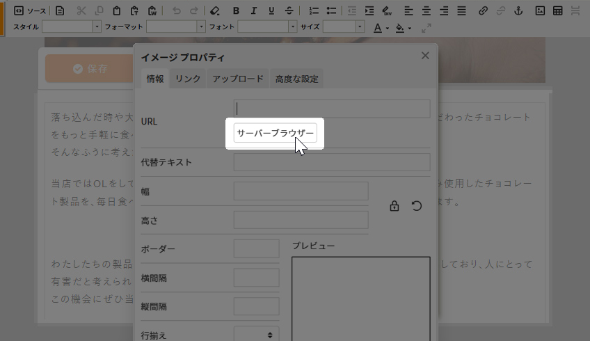 立ち上がったサーバーブラウザーから挿入したい画像を選択します。