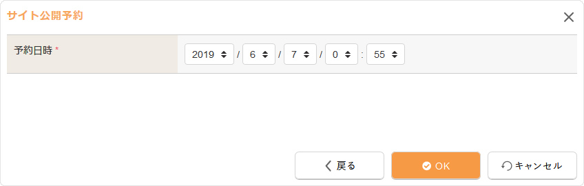 上記のサイト公開予約の設定の方法で“サイト公開予約ダイアログ”を開きます。