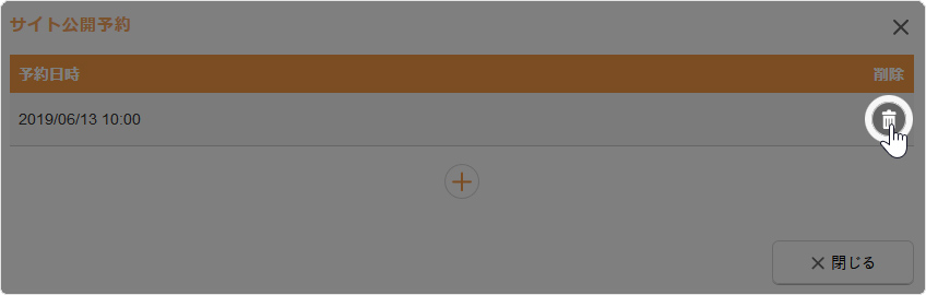 サイト公開予約を設定したリストが表示されますので、削除したい予約の[削除]ボタン
