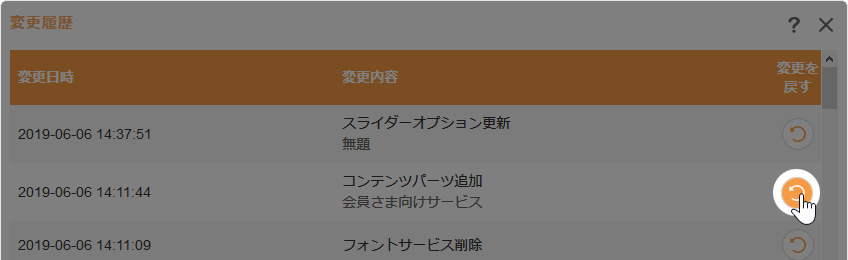 “変更履歴ダイアログ”の中から元に戻したい変更内容の[変更を戻す]ボタン