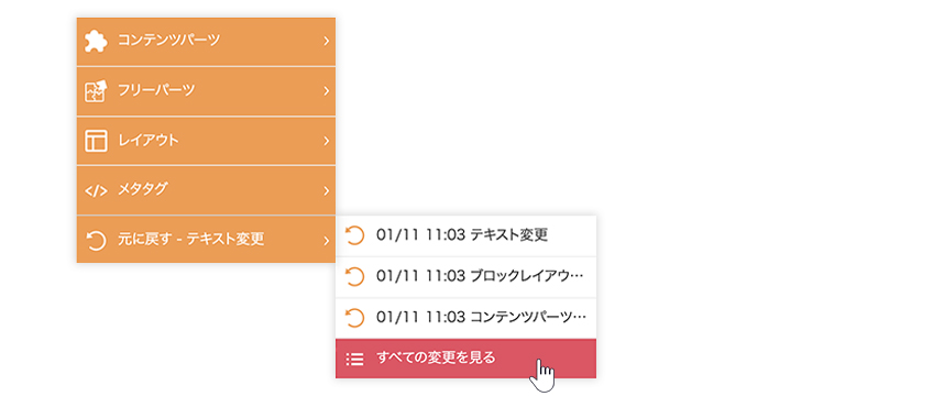 - ログインしているアカウントごとに直前に変更した内容が履歴として表示されます。複数人で同じアカウントを使用していると、自分が変更した内容と異なる変更内容が表示される場合がありますのでご注意ください。