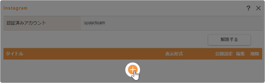 [追加]ボタンです。新しくInstagramの表示設定を追加します。 |