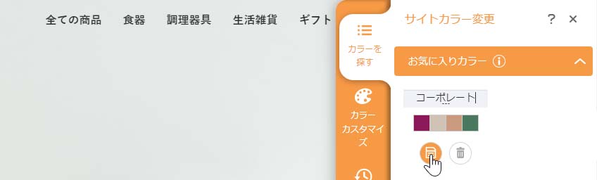 【カラーカスタマイズ】タブで設定したカスタマイズしたサイトカラー(基本設定・詳細設定)を[お気に入りカラーに保存]ボタン