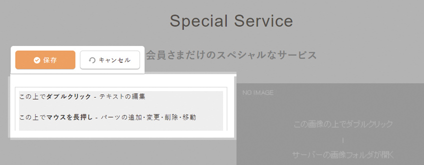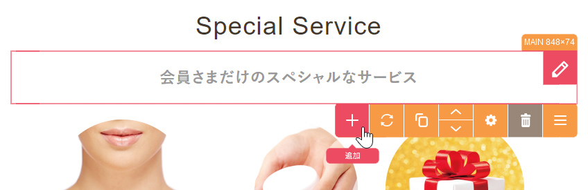 コンテンツパーツ機能を使ってページ内に新しく文字や画像を追加します。