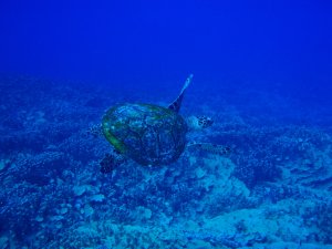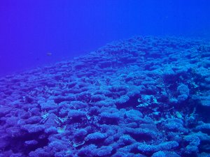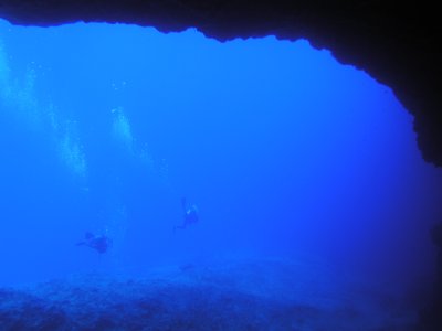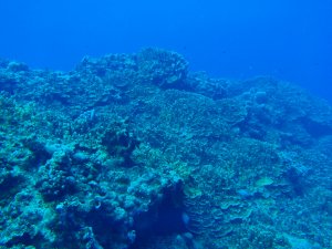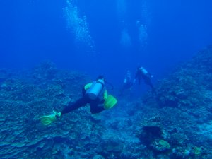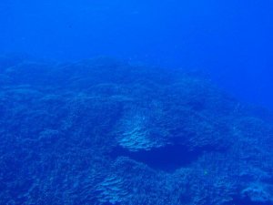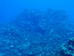 水中は、西側と違いサンゴ礁はあまり発達していないが、トンネルやクレパスなどがあり、地形が楽しめる。