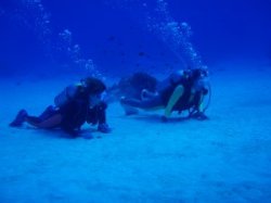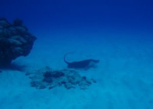 砂地では、アカエイの大群に遭遇することもある。