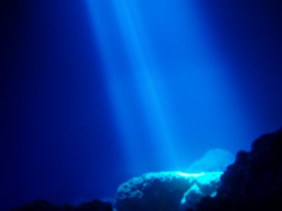透明度が良いうえに海底が真っ白なので、非常に明るい海中景観が楽しめる。