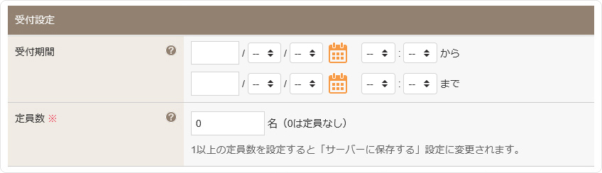 | 定員数 | メールフォームに定員数を設定します。詳しくは「受付期間・定員の設定」について参照してください。 |