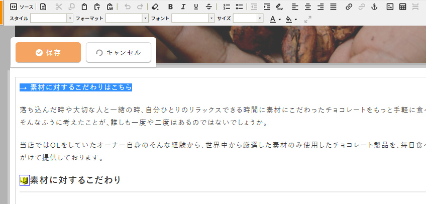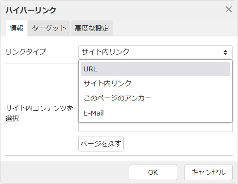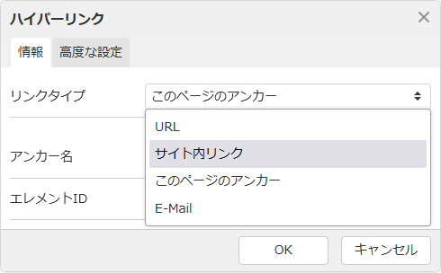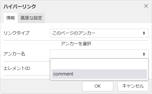 - アンカーが異なるコンテンツパーツに存在する場合、ダイレクト編集時にはアンカー名が表示されません。その場合は、フルエディタ編集にてリンクを設定してください。