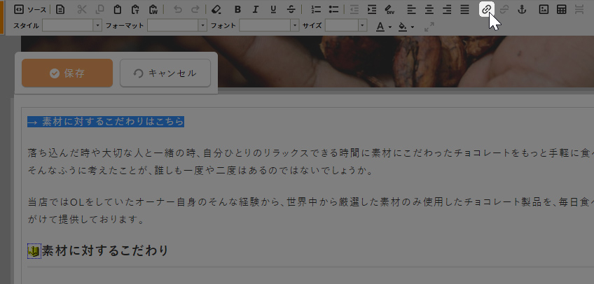 ツールバーの[リンク挿入/編集]ボタン