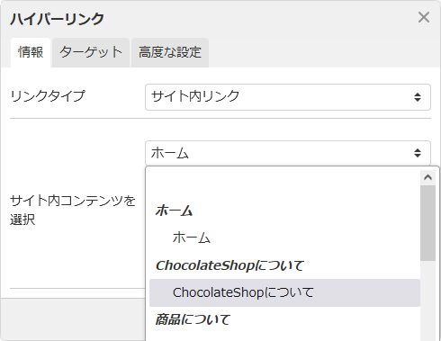 サイト内コンテンツからアンカーを設置したページを選択します。