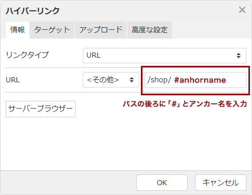ページ内のアンカーにリンクを設定する場合