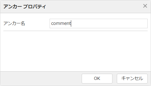 “アンカープロパティ”の設定画面が表示されますので、アルファベットから始まる任意のアンカー名を半角英数字(記号不可)で入力します。