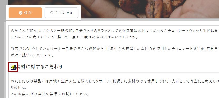フルエディタ編集の画面でアンカーを設置したい位置にカーソルを置きます。