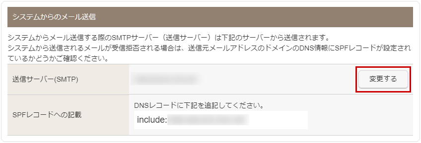 「システムからのメール送信」に表示される《送信サーバー(SMTP)》を変更する場合は[変更する]ボタンクリックします。