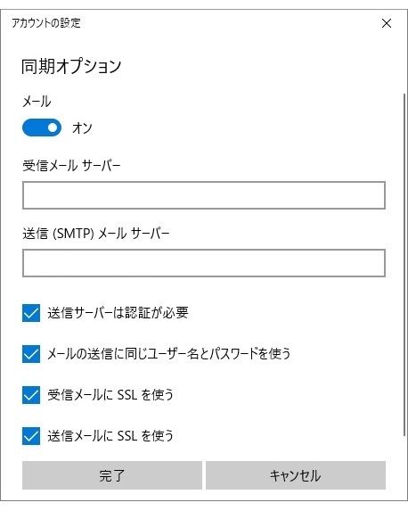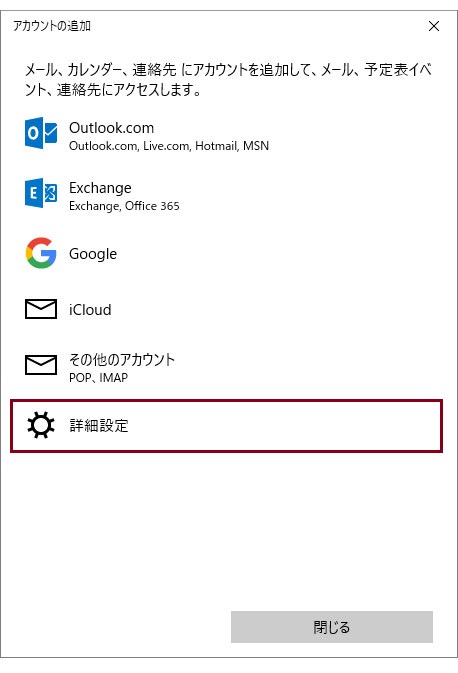 メールソフトの設定方法(Windows10 メールアプリ)