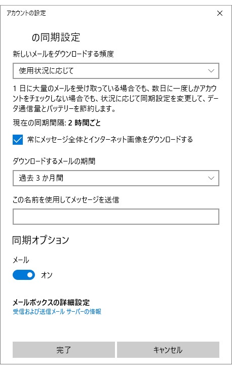 メールボックスの同期設定を変更