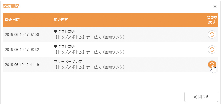 [閉じる]ボタンを選択して“変更履歴ダイアログ”を閉じます。