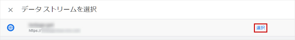 データストリームを選択画面で該当のデータストリームを選択(マウスを置くと「選択」リンクが表示されます)します。