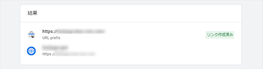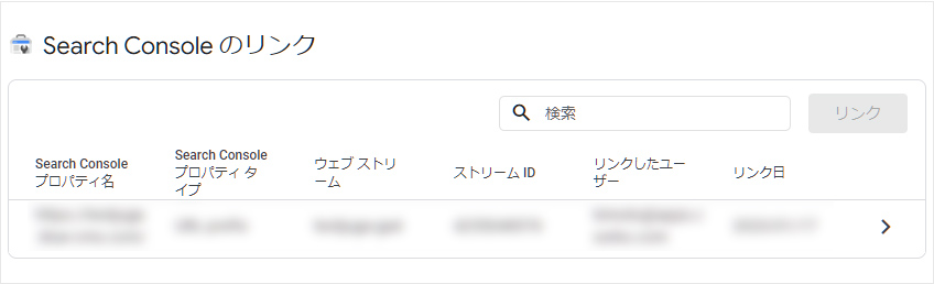 「結果」に「リンク作成済み」と表示されていることを確認し、Search Consoleとのリンクを作成する画面を閉じると、Search Consoleのリンク画面に作成したリンクの情報が表示されます。