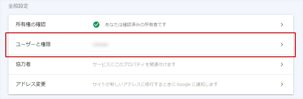 設定画面の「全般設定」の[ユーザーと権限]をクリックします。